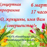 6 марта в 17-00 ч. в Нагайбакском Доме культуры состоится праздничный концерт, посвященный Международному женскому дню. В программе примут участие ученики Ново-Рассыпнянской средней школы, коллектив "Хорошее настроение", вокальный ансамбль "Россияночка" и солисты Дома культуры. Приходите порадуйте себя и поддержите артистов.